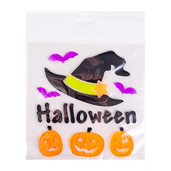Ablakzselé 20x25 cm halloween boszi kalap és tök