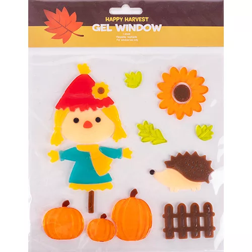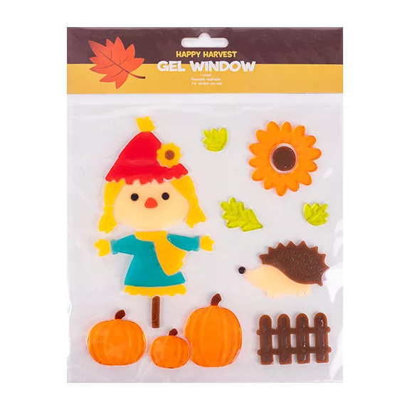 Ablakzselé 20x25 cm madárijesztő sünivel és tökkel