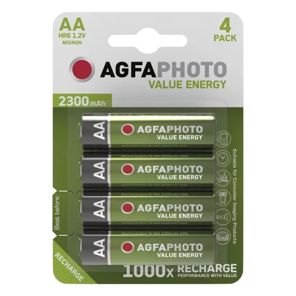 Az energiatakarékos, környezetbarát megoldásért válassza az Agfaphoto újratölthető akkumulátorait. Az akár 1000 alkalommal is újratölthető elemeink energiát biztosítanak minden egyező elemfoglalatú hordozható, elektromos eszközeinknek, legyen szó zseblámpáról, fürdőszobai kellékekről, távirányítókról, falióráról, gyermekjátékról, fényképezőkről, vagy akár számítógépes kiegészítőkről. 1,2V-os feszültséggel biztosítja termékeinknek a stabil, hosszantartó működést. Feszültségtartományuk alacsonyabb az alkáli elemeknél, hosszútávon is képesek megőrizni ezt a szintet, míg más elemek esetében ez az érték idővel csökken. Akkumulátoraink bármilyen hasonló elemfoglalatú töltővel tölthetők.