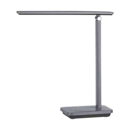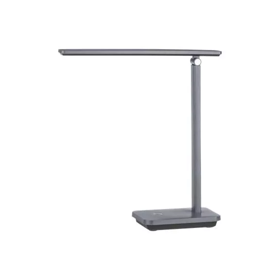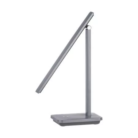 INIESTA LED asztali lámpa állítható lámpafejjel, tetszés szerint forgatható és dönthető. A lámpafej beépített LED izzókat tartalmaz szürke műanyag borítással, szabályozható fehér színű fénnyel. Érintéskapcsolóval és USB-porttal rendelkezik.