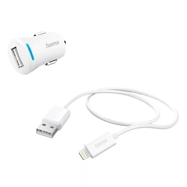Autós töltő szett HAMA Lightning/USB 2,4A fehér