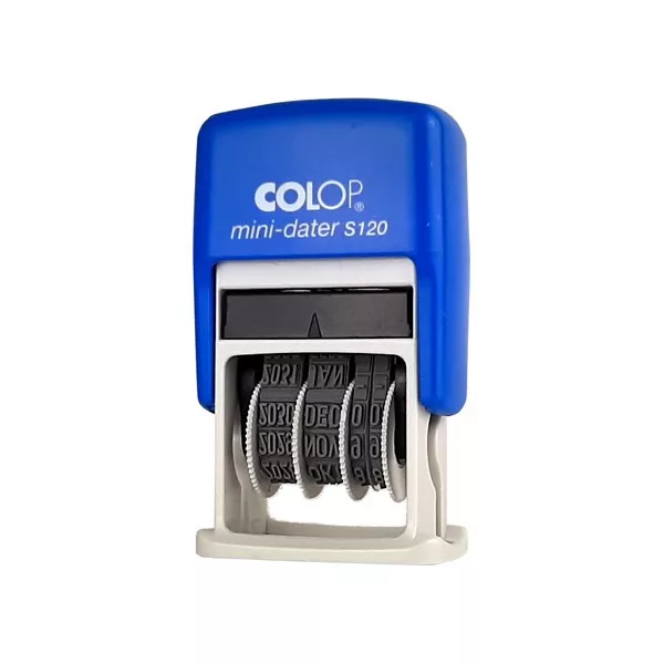 Bélyegző dátum COLOP S120 Mini betűvel kék ház fekete párna