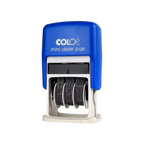 Bélyegző dátum COLOP S120 Mini fordított sorrendű számmal kék ház fekete párna