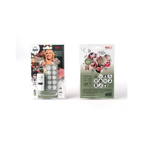 Bélyegző, kirakós, 10 motívummal, "Nio Karácsony", fehér ház, fekete párnával