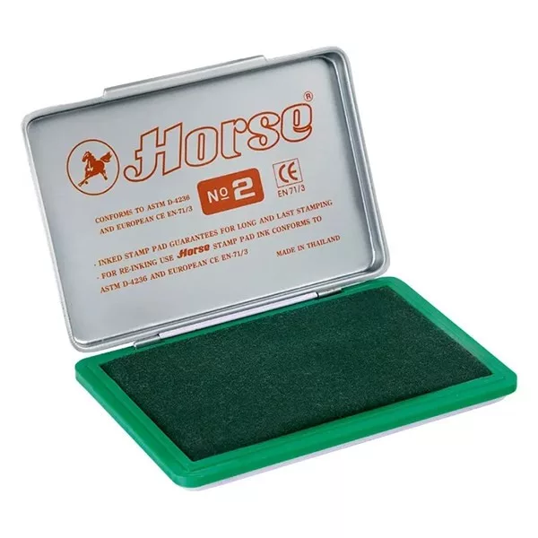 Kézi bélyegzőkhöz használatos 110x70 mm (Nr. 2) zöld, műanyag és fém házas bélyegzőpárna.