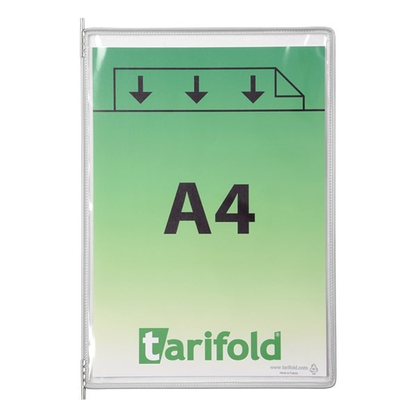 A bemutatótábla kiemelkedő minőségének köszönhetően flexibilis, strapabíró és rendkívül hatékony. A kétoldalú bemutatótábla a Tarifold tartókba tervezett prezentációs rendszerek részét képezi. A táblák műanyaggal bevont, acélhuzal kerete tartós és egyben rugalmas tartást eredményez. A tábla a fém forgócsapoknak köszönhetően a tartókba könnyen behelyezhető és eltávolítható. Alkalmas ipari üzemekben való használatra. A bemutatótábla védi a dokumentumokat a szennyeződésektől és a nedvességtől, ugyanakkor a dokumentumok könnyen cserélhetők.