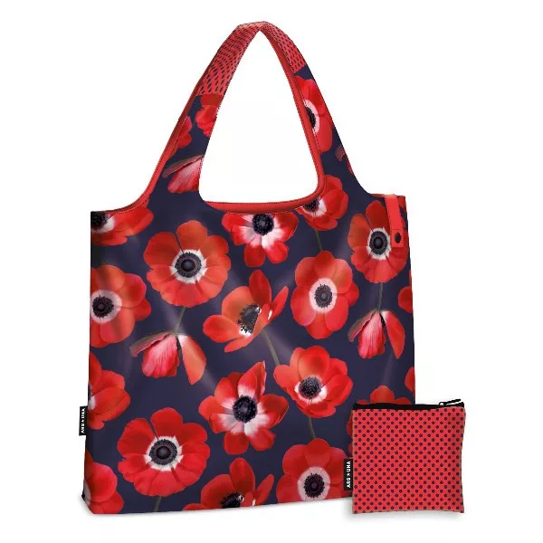 Bevásárlótáska újrahasznosított anyagból (egy táska kb. 3 db visszaforgatott PET palack felhasználásával készül), anyaga vízlepergető, 22 literes, 10 kg- os terhelhetőségű. A fül magassága 27 cm kényelmes, könnyen vállravehető. Praktikus, a plusz kis zsebbe összehajtogatható, így kis helyen elfér.Használható kézben hordva vagy vállra akasztva.