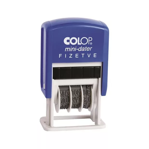 - azonnali használatra kész dátumbélyegző a leggyakrabban használt irodai szavakkal - év/hónap/nap dátumformátummal - az évszalag 12 évig használható - a szöveg kék, a keltezés piros színben jelenik meg - S160/L szöveg: FIZETVE - cserepárnája: E10, E10/2 Gyártó/első EU forgalmazó elérhetősége: COLOP Stempelerzeugung Skopek GmbH&Co.KG 4600 Wels, Dr.-Arming-Straße 5, Ausztria colop@colop.com www.colop.com