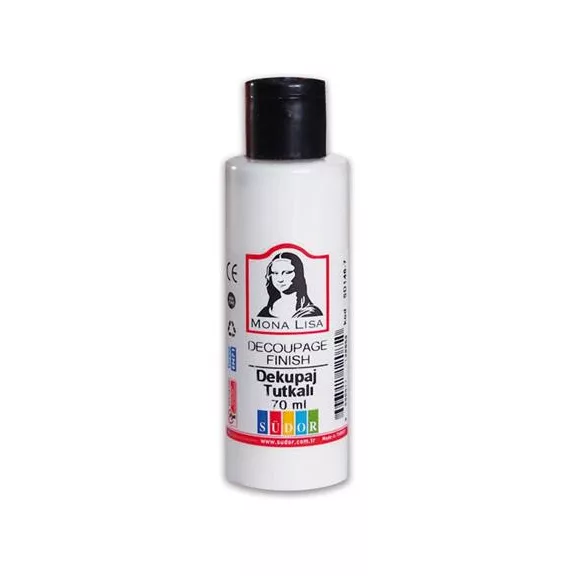 3 az 1-ben decoupage ragasztó. Ragasztó, texildecoupage, lakk. Alkalmas papír, fa, polisztirol, textil, pamut, műszál, stb. felületre. Vízbázisú, vízzel hígítható. Nagyobb hígítás esetén matt felületet ad, míg sűrűbb, vagy többszöri felület kezelés után lakkszerű hatás érhető el. Textil felületen 130 fokon vasalással fixáljuk.