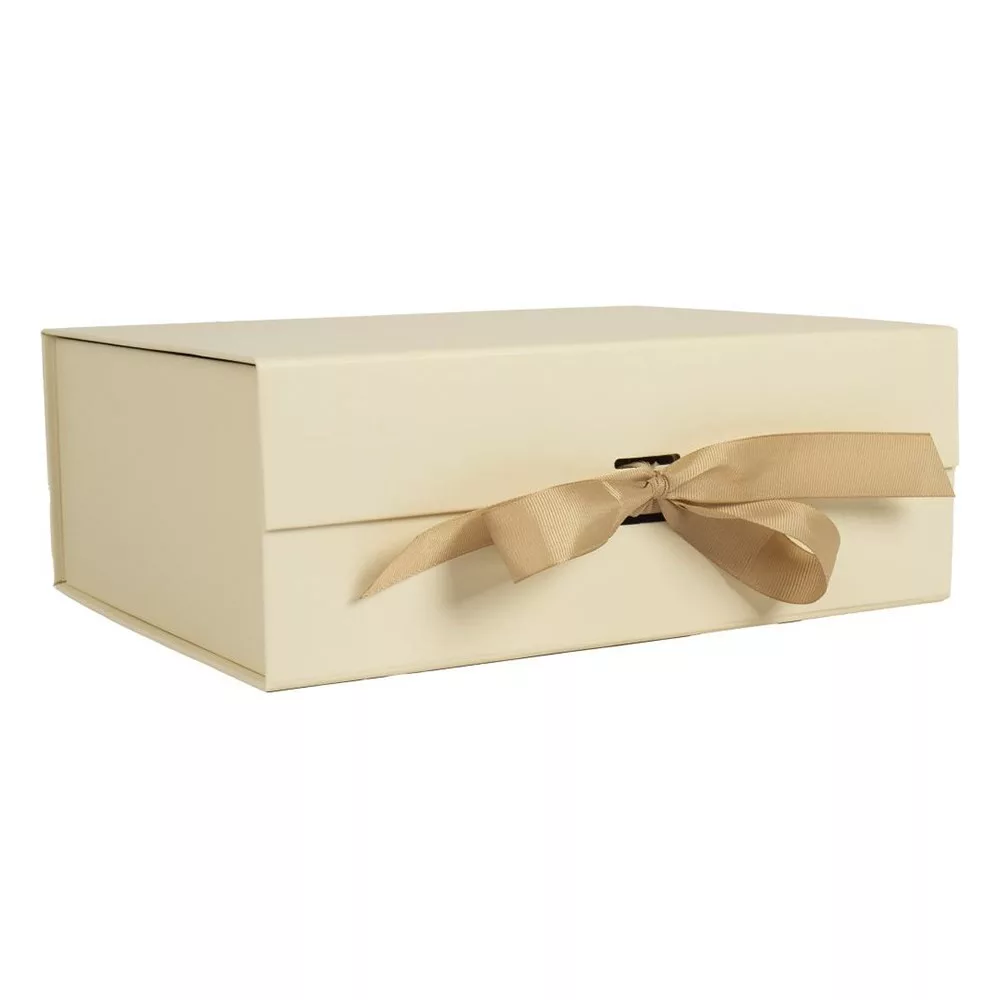 Összehajtható, bézs színű díszdoboz 33x25x12,5 cm méretben.