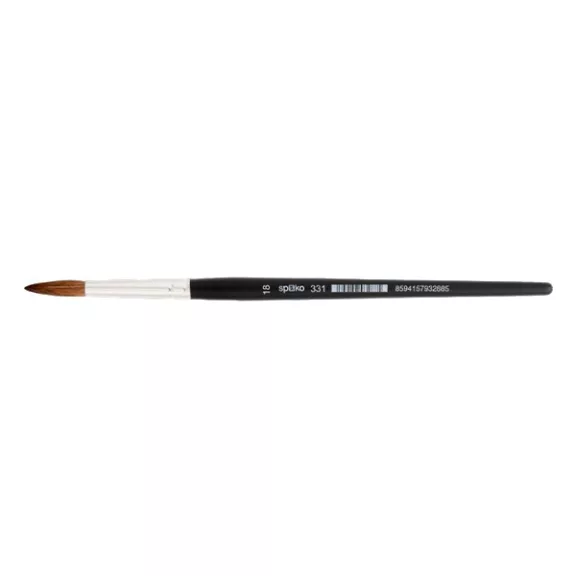 Minőségi, kerek ecset finom és természetes szálakkal. Fekete, lakkozott, fa nyél, nyomtatott logóval, vonalkóddal és mérettel. A krómozott sörtefogó nem korrodál és megtartja a sörtéket ismételt kimosás esetén is. Ideális iskolásoknak és szabadidős alkotáshoz egyaránt.