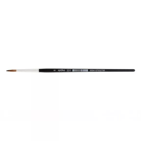 Minőségi, kerek ecset finom és természetes szálakkal. Fekete, lakkozott, fa nyél, nyomtatott logóval, vonalkóddal és mérettel. A krómozott sörtefogó nem korrodál és megtartja a sörtéket ismételt kimosás esetén is. Ideális iskolásoknak és szabadidős alkotáshoz egyaránt.