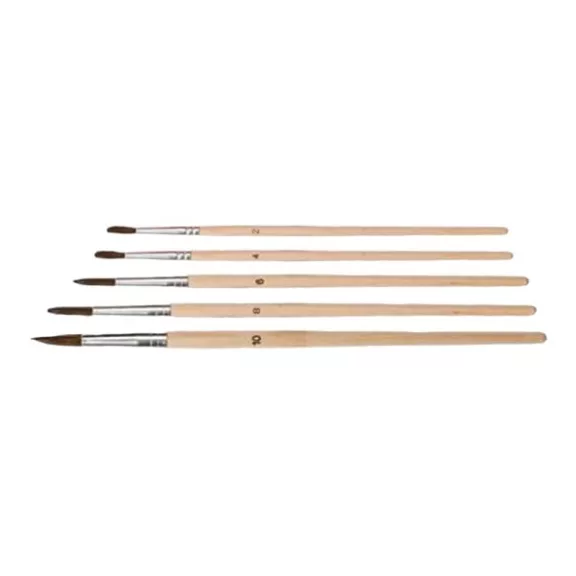 5 db-os hegyes ecset készlet natúr nyéllel, póniszőr szálakkal. A hegyénél vékonyabb, az aljánál pedig vastagabb, így kontrolálható a vonalak vastagsága.