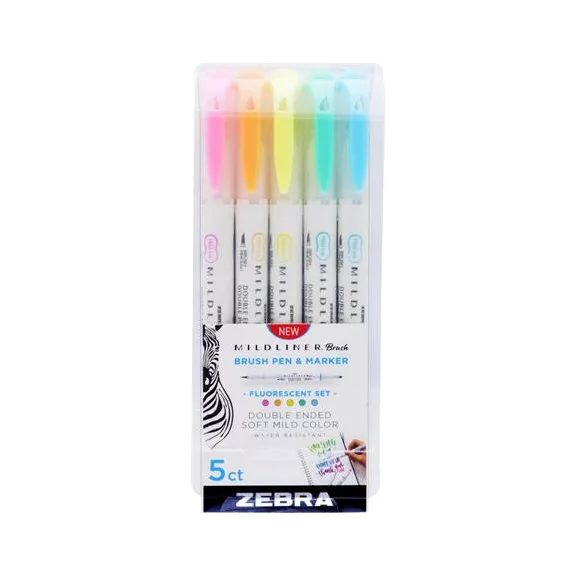 Ecsetirón készlet, kétvégű ZEBRA "Mildliner Fluorescent", 5 szín