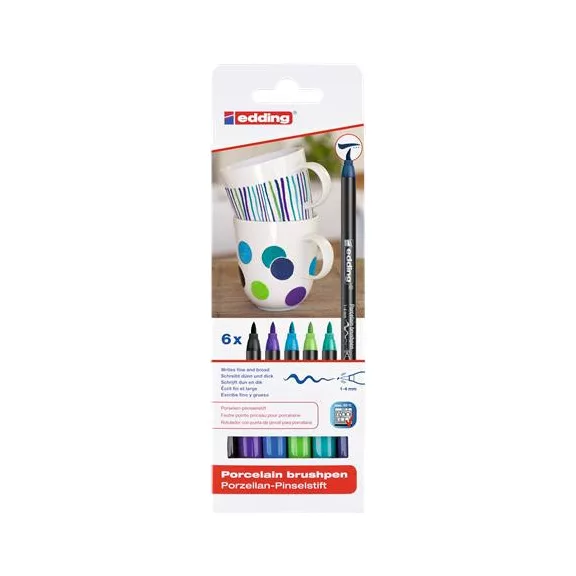 Ecsetirón készlet, porcelánra, EDDING "4200 Cool color", 6 különböző szín