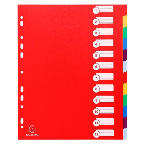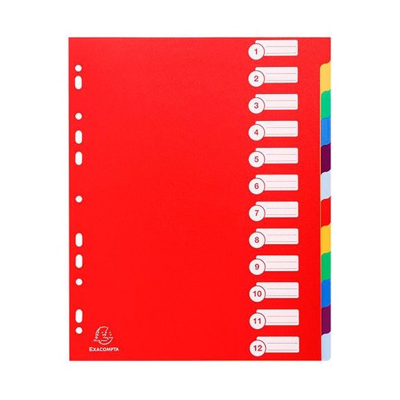 Elválasztólap PP Exacompta A/4 maxi, 12 részes színes