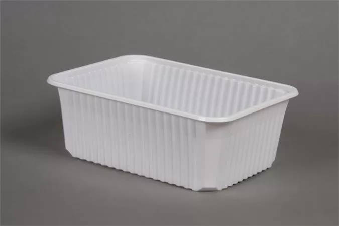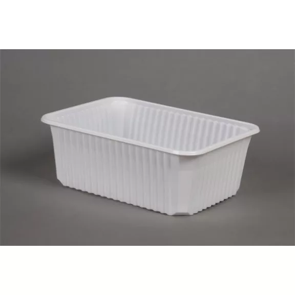 Mikrózható ételtartó doboz, bordázott, masszív, kitűnő hőálló képességgel. Normál adag főételek, főzelékek, húsok, sültek, tészták kiszállítására, újramelegítésére tervezve. -űrtartalom: 1000 ml -méretek: 6,5 x 18 x 13,3 cm (magasság x mélység x szélesség) -szín: fehér -tető nélkül