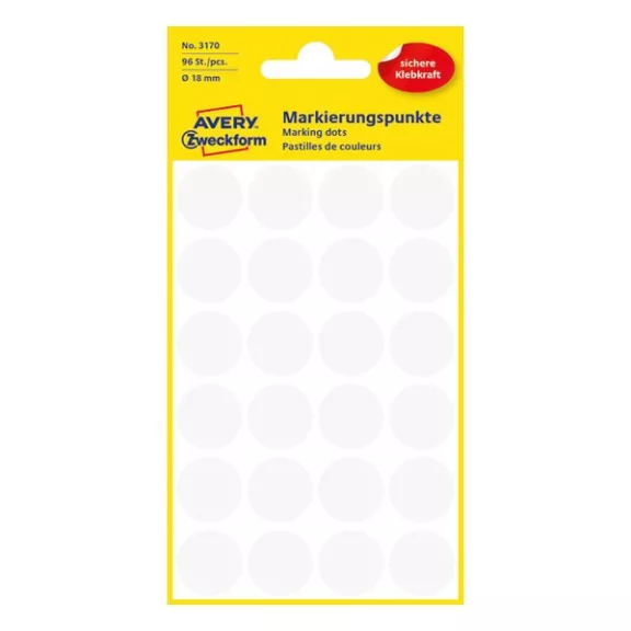Etikett AVERY 3170 öntapadó jelölőpont fehér 18mm 96 jelölőpont/csomag