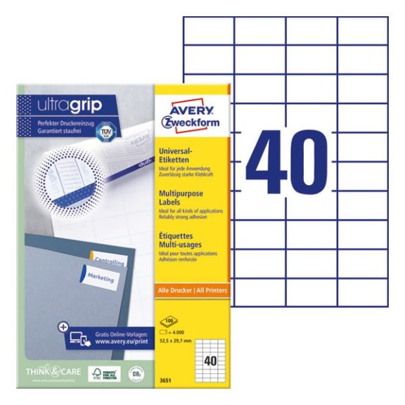 A címke hátoldalán ultragrip technológiának köszönhetően a lapadagolás pontos, a nyomtatás elakadásmentes.
