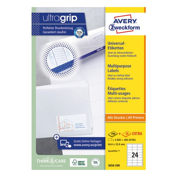 Etikett univerzális Avery Zweckform, 3658-200 cikkszámú.