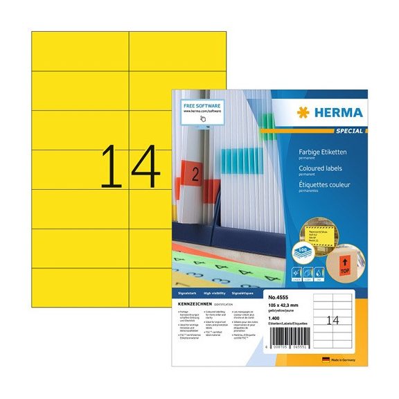 Etikett címke Herma 105x42.3 mm szegély nélküli sárga 100 ív 1400 db/doboz