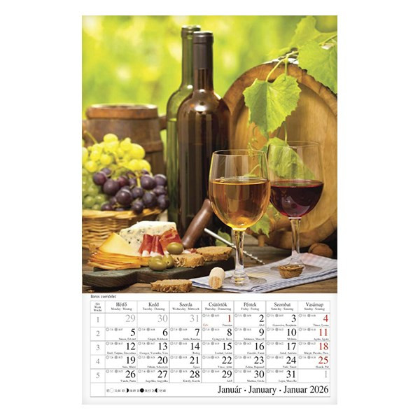 Falinaptár CSG 210x320mm álló Borvidék 2026.