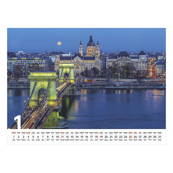 14 lapos, spirálozott falinaptár, magyar ünnepekkel és névnapokkal. Emblémázási lehetőség: szitanyomás és présfólia.