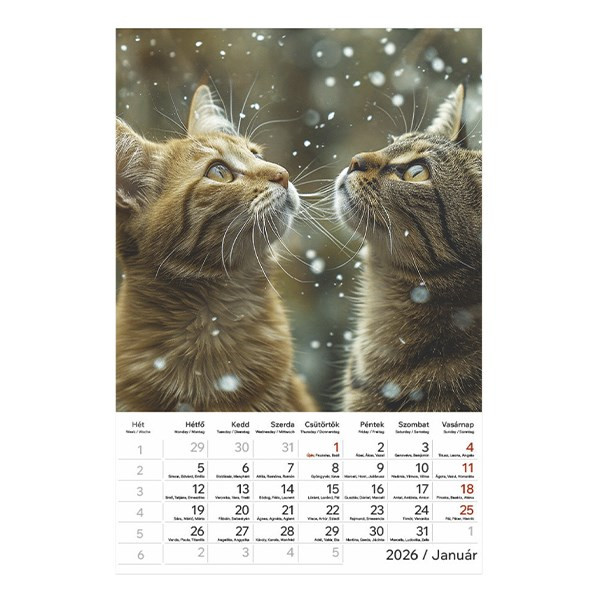 Falinaptár TOPTIMER T094 220x330mm álló Cicák 2026.