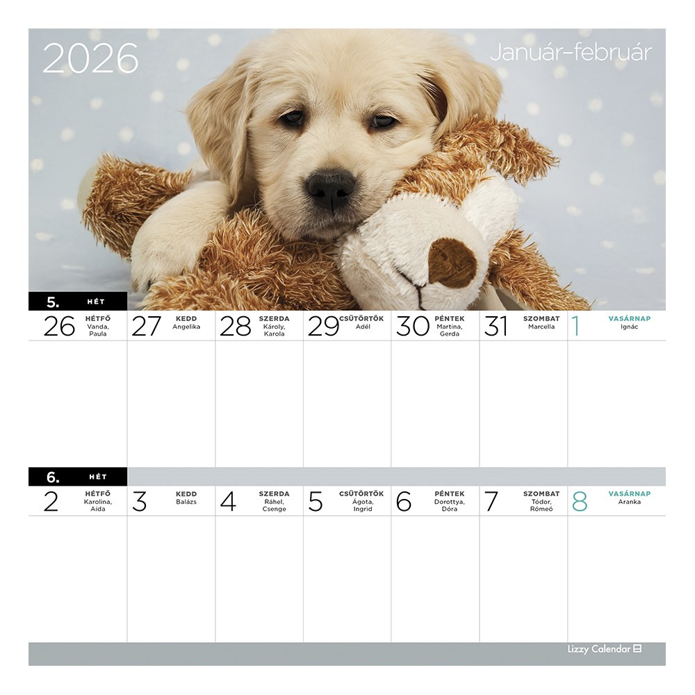 Falinaptár mágneses LIZZY CARD 220x220mm 2 hetes Kutyák 2026.