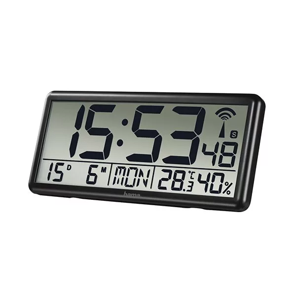 Rendkívül nagy idő kijelzővel rendelkező rádió-vezérelt óra, amely automatikusan a világ legpontosabb órájához igazodik, nap, hőmérséklet és levegő páratartalom kijelzéssel