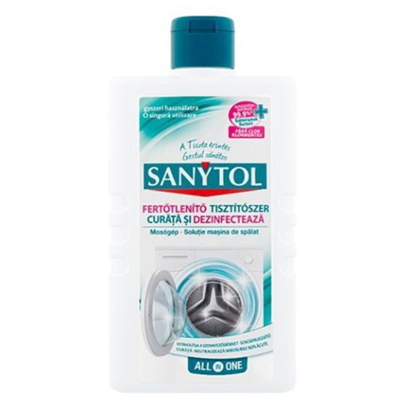 Sanytol mosógép fertőtlenítő tisztítószer. Tisztít, fertőtlenít, szagtalanít és eltávolítja a vízkövet. Űrtartalom: 250 ml.