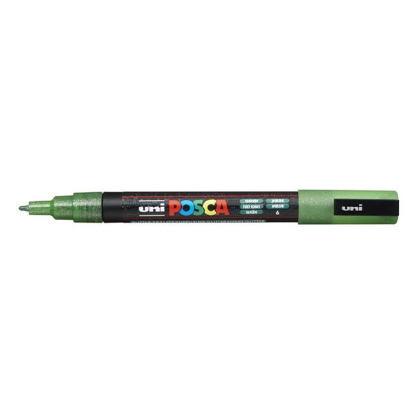 Dekormarker, kreatív marker. Iskolai, művészi és ipari területen használható eszköz. Vízbázisú, nagy fedőképességű festék. Felhasználható: textil, fa, üveg, műanyag, papír, porcelán, fém, bőr és különféle ásványi eredetű anyagokra. Egészségre ártalmatlan, vegyi oldószermentes tinta. Száradás után víz és UV álló. Tinta színe: csillámló zöld. Hegyvastagság: 0,9-1,3 mm, kúpos.