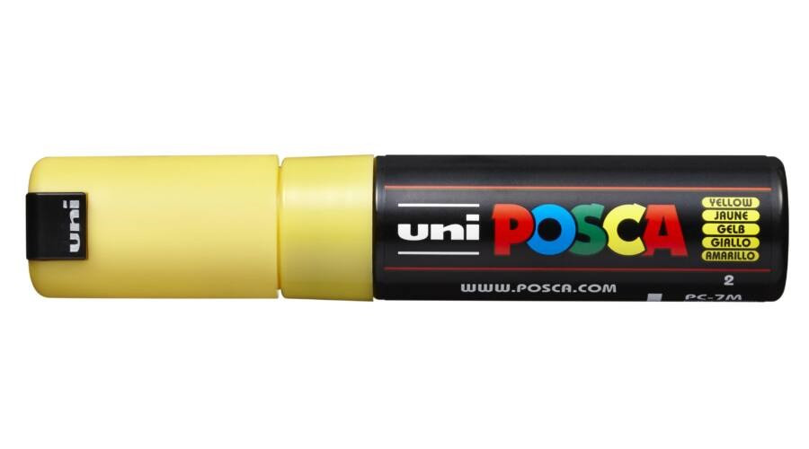 Dekormarker, kreatív marker. Iskolai, művészi és ipari területen használható eszköz. Vízbázisú, nagy fedőképességű festék. Felhasználható: textil, fa, üveg, műanyag, papír, porcelán, fém, bőr és különféle ásványi eredetű anyagokra. Egészségre ártalmatlan, vegyi oldószermentes tinta. Száradás után víz és UV álló. Tinta színe: sárga. Hegyvastagság: 4,5-5,5 mm, kerek.