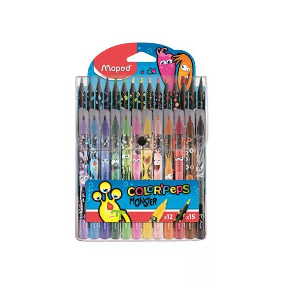 Imádnivaló szörnyekkel díszített filctollak és ceruzák egy készletben, melyek kiválóan alkalmasak rajzolásra és színezésre.
