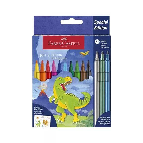 Filctoll készlet, FABER-CASTELL "Dinoszaurusz" 10 különböző szín + 3 metál