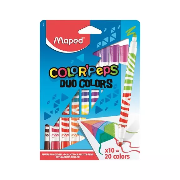 - kétvégű filctoll - zebramintás tolltest - 10 db filctoll egy dobozban, vagyis összesen 20 szín - ruhából könnyen kimosható, vízbázisú tinta - közepes vonalvastagságú hegy, amely rajzolásra és színezésre is egyaránt alkalmas - háromszög alakú, ergonomikus kialakítás a fogórésznél - nyomásnak ellenálló hegy - vonalvastagság: 1-4,75 mm Gyártó/első EU forgalmazó elérhetősége: MAPED SAS 530 route de Pringy - 74370 Argonay sophie.souillard@maped.fr www.maped.com