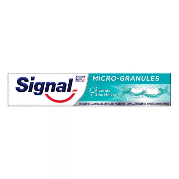 A Signal Micro-Granules fogkrém mikroszemcséket tartalmaz, melyek segítenek eltávolítani a lepedéket még a nehezen elérhető fogközökből is.