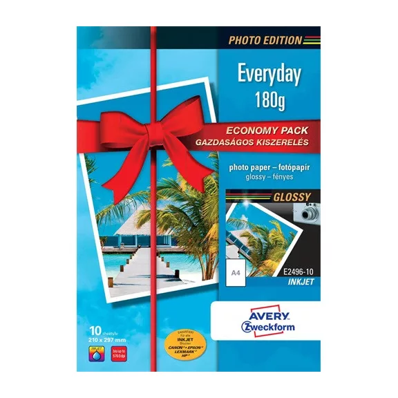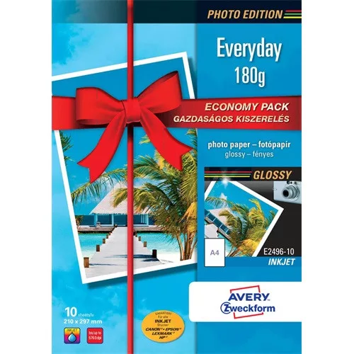 Fotópapír Avery Zweckform A/4 180g 10 lap/csomag tintasugaras fényes E2496-10