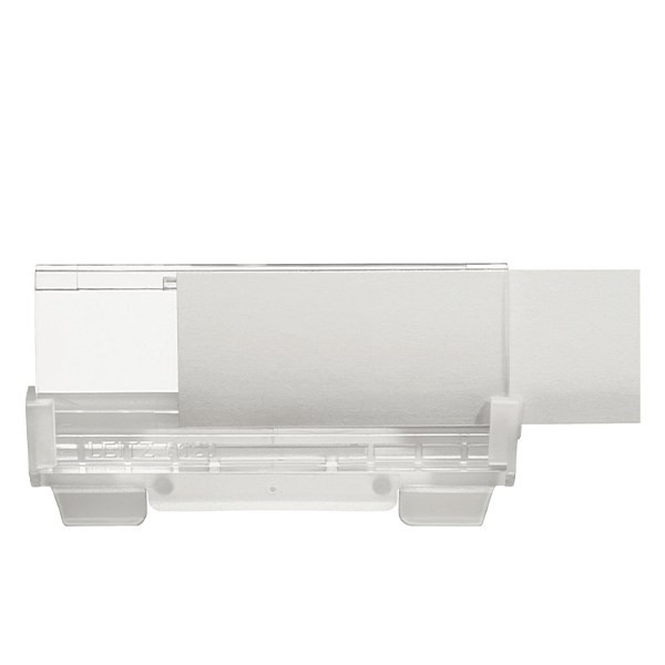 Innovatív, visszacsúsztatható címketartó a könnyebb tárolásért és szállításért.