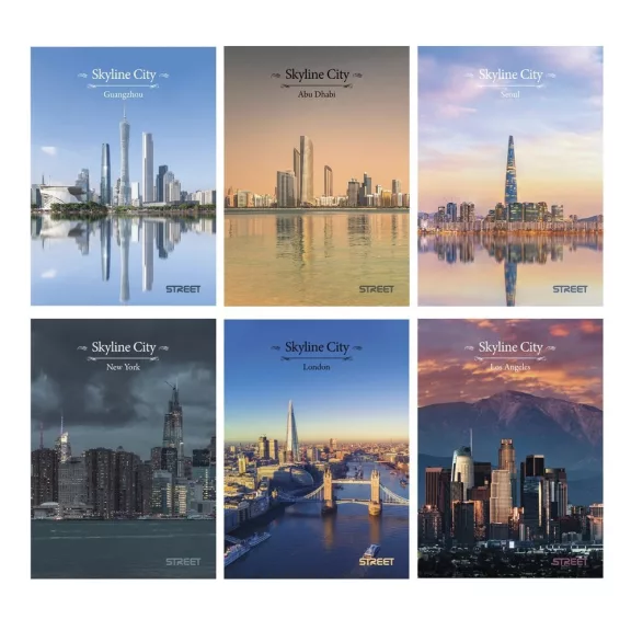 Karton borítású "Skyline" A/4 54 lapos sima füzet, különböző országok mintáival, vegyes csomagban