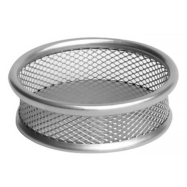 Fémhálós, ezüst, kerek gémkapocs tartó. Irodai és otthoni használatra egyaránt alkalmas.