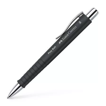 Golyóstoll, 1 mm, XB, nyomógombos, feketek tolltest, FABER-CASTELL "Poly Ball", kék