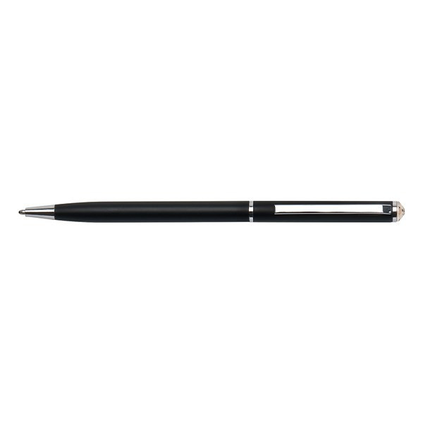Golyóstoll ART CRYSTELLA fekete slim arany SWAROVSKI® kristállyal Klasszikus kivitel. Eredeti Swarovski kristályok. Tolltest fém, logózható, lézergravírozható. Vonalvastagság: 0,7 mm. Írás színe: kék. Tolltest színe: fekete. Kristály színe: arany