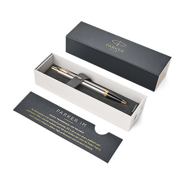 Professzionális és megbízható. Ideális partner, mely korlátlan lehetőséggel rendelkezik; az IM tollak egyszerre elegánsak, ragyogóak és közkedveltek. A tartós rozsdamentes acél hegy és tolltest a Parker örökséget visszhangozzák, minden részletében az írás élményére törekedve.