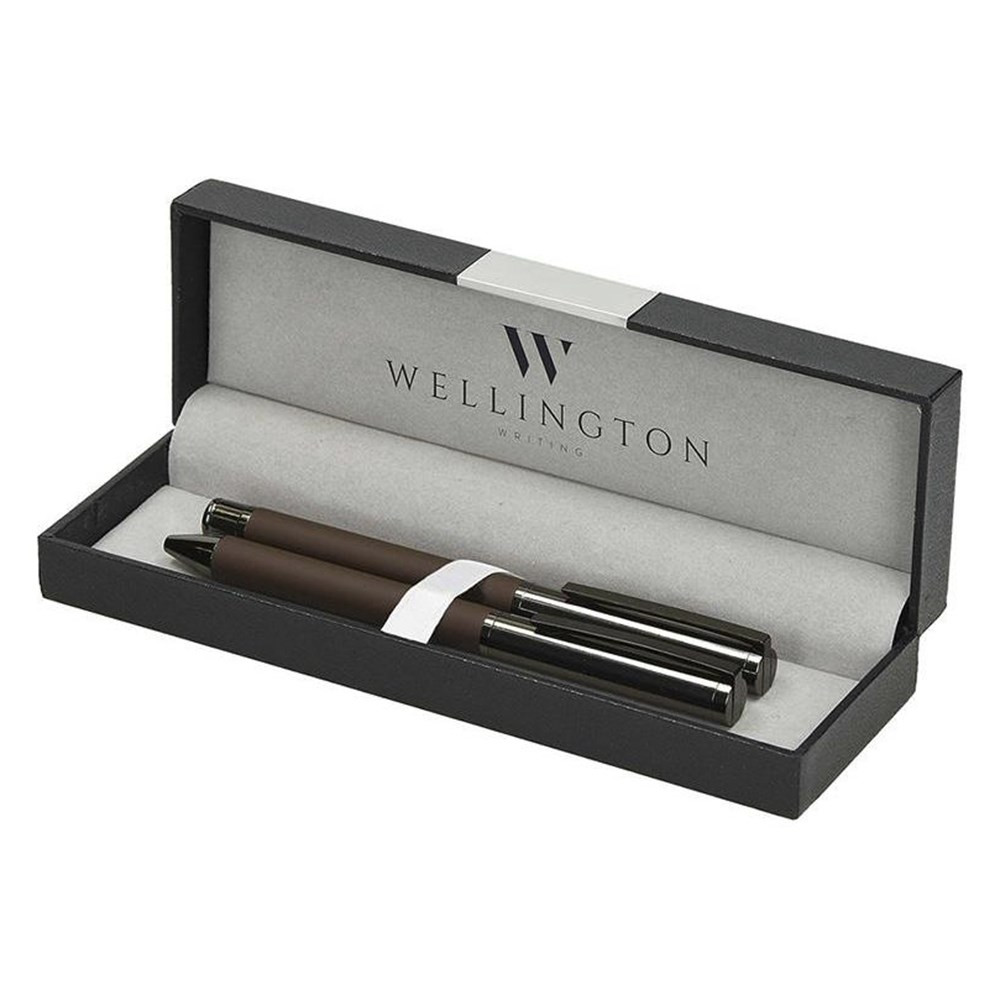 Golyóstoll készlet WELLINGTON Stamford golyóstoll + rollertoll barna díszdobozban