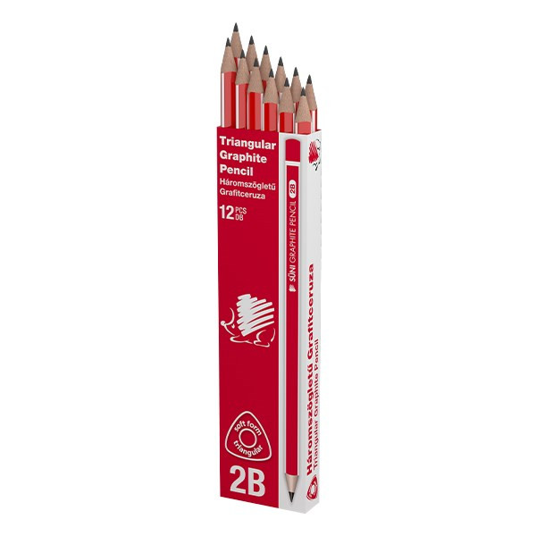 Háromszögletű grafitceruza, 2B keménység, csíkos ceruzatest.