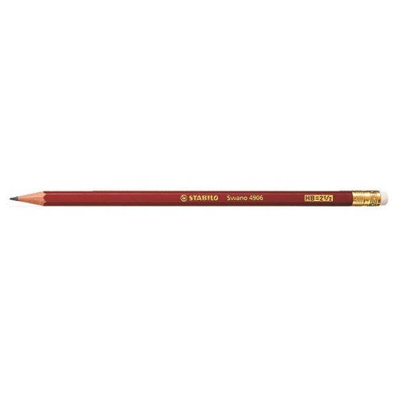 Grafit ceruza piros testtel, a végén radírral. Hatszögletű alakú test. HB keménység.