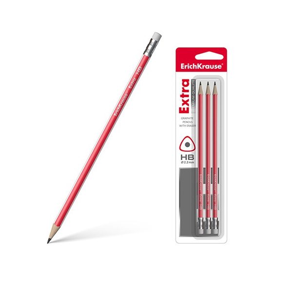 Grafitirón ErichKrause Extra HB háromszögletű radírral 3 db/bliszter