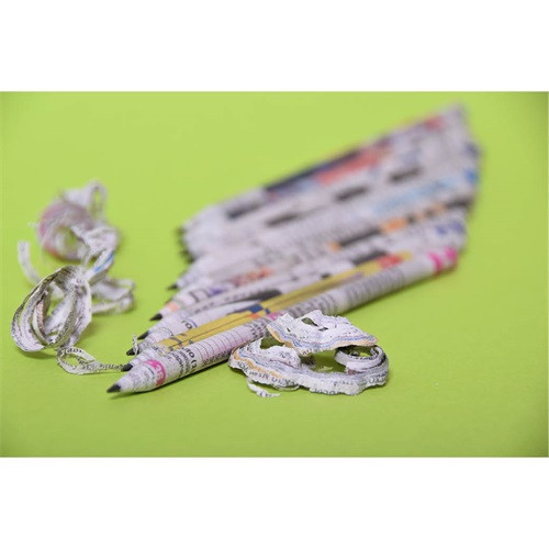 Használt újságpapírból készült grafitceruza.