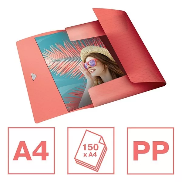 Fedezze fel a természet élénk színeit és teremtsen pozitív munkakörnyezetet az Esselte Colour'Breeze termékcsaláddal. Segít a rendszerezésben és a motiváció fenntartásában a munka vagy tanulás során. Az Esselte Colour'Breeze gumis mappa egy könnyű, műanyagból készült A4 méretű mappa, amely tökéletes jegyzetek, projektmunkák és szórólapok szállításához, vagy irattálcákon, polcokon történő tárolásához. Tökéletesen illeszkedik a Colour'Breeze jumbo gumis mappába, és alkalmas szabványos méretű tasakok és genothermek tárolására is. Ez az iratgyűjtő mappa akár 150 lap (80 g/m2) befogadására is alkalmas, a 3 pólyának és tetszetős, gumis záródásnak köszönhetően biztonságban tartja a dokumentumokat. Élénk színválasztékban, friss és modern Colour'Breeze dombornyomott mintázattal. Colour'Breeze - a frissesség szele.